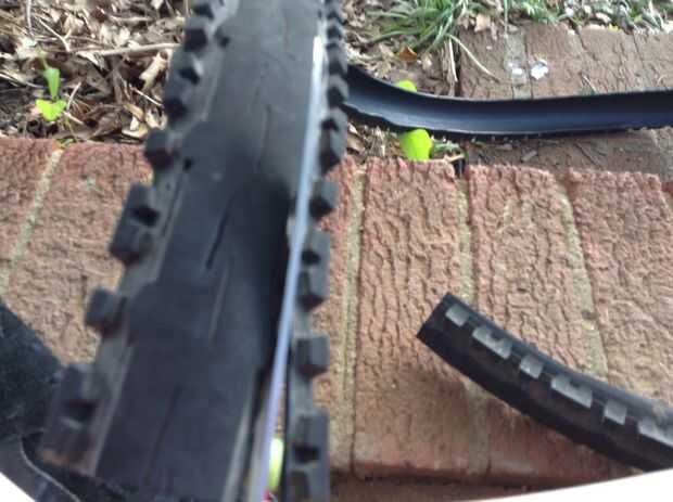 para el neumático de la banda de rodadura de kross, esto significó que necesitaba para cortar el borde nobby de la pisada.