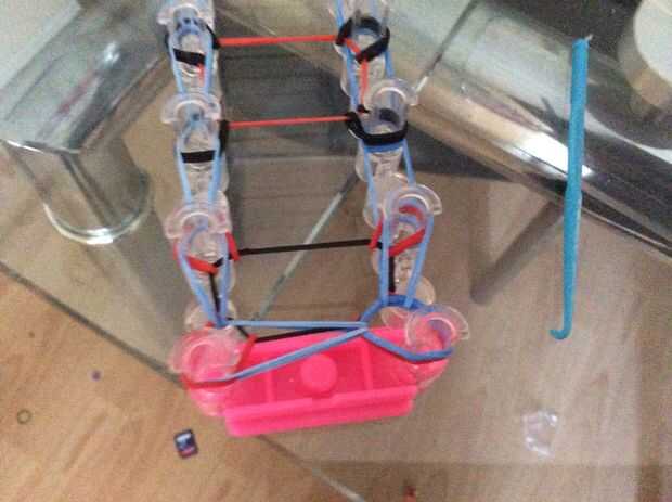 como hacer la Union Jack telar banda - intermedio.Paso 1: materiales Se necesita:Algunas bandas de telar (cualquier color)TelarHerramienta de ganchoPaso 2: fronteras Que empiezas con los labios de los ganchos hacia fuera y comenzar en la parte superi