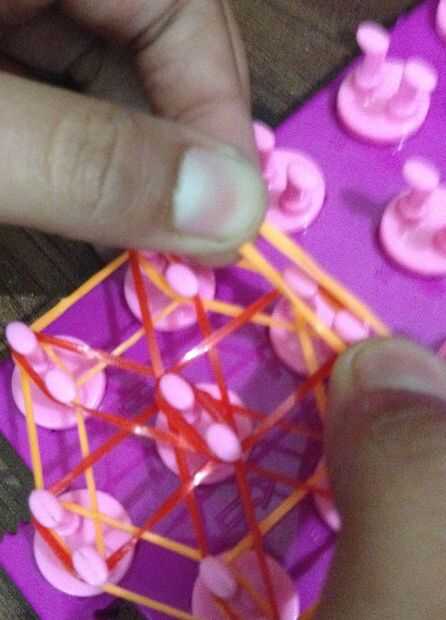 como hacer la Union Jack telar banda - intermedio.Paso 1: materiales Se necesita:Algunas bandas de telar (cualquier color)TelarHerramienta de ganchoPaso 2: fronteras Que empiezas con los labios de los ganchos hacia fuera y comenzar en la parte superi