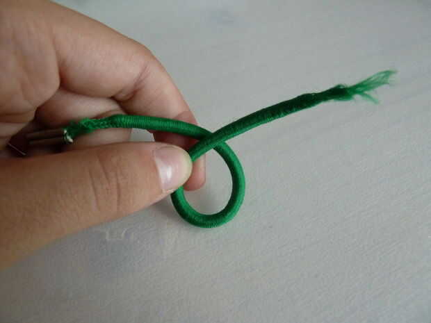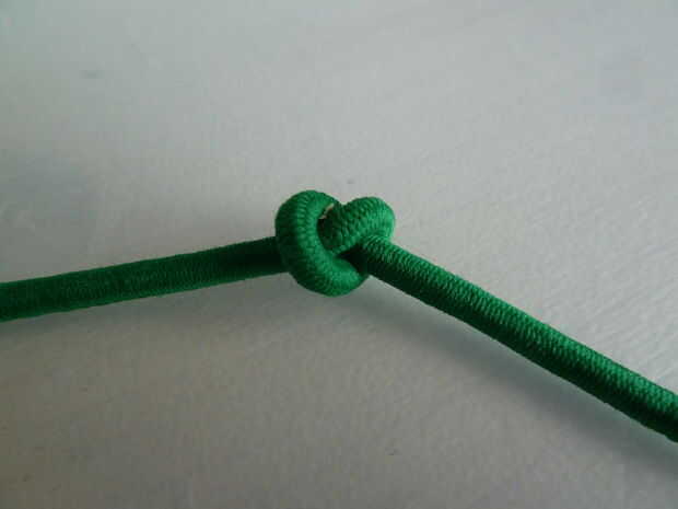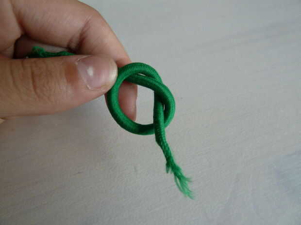 Empezar haciendo un nudo en el centro de la banda. Hacer un lazo, poner el canal final (básicamente sólo un nudo simple) y tire de él, pero no demasiado apretado, usted realmente desea el nudo para mostrar, no tan pequeño como sea posible.