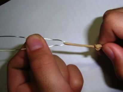 -La banda de goma se debe cortar y haga un nudo al final. Como el cuadro demostrado.
