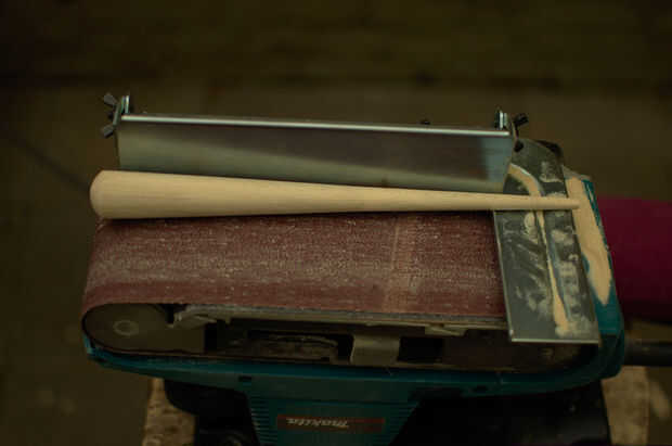 Si lo haces con las manos desnudas, estar muy cerca de la correa de lijado, considere el uso de Scrapwood para presionar hacia abajo.