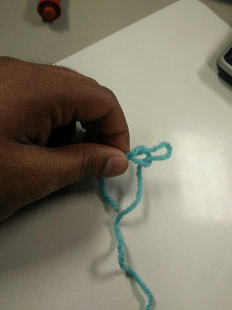 Jalar el extremo largo del hilo a través del lazo para hacer un nudo del resbalón
