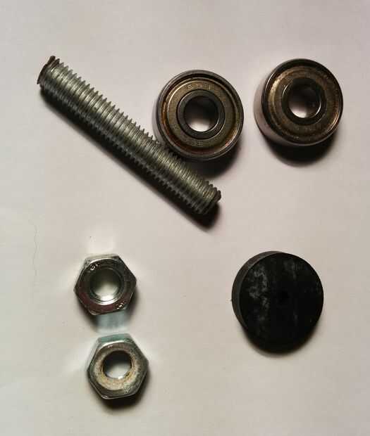 El clásico 608 cojinete tiene un diámetro exterior de 22 mm que corresponde con el diámetro interno del tubo de PVC. También tiene un diámetro interno de 8 mm que permite que los pernos de 8 mm fuerte para ser utilizado. Estos pueden ser recogidos de tiendas de descuento deportivo o ebay en paquetes de 8-10 de aproximadamente 0,5 euros.