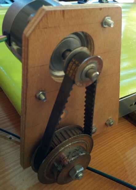 Un tapón de 22 mm, con el centro perforado hacia fuera a 7 mm se puede estirar en una varilla de 8 mm de rosca. Cuando esto esté colocado en el interior de un tubo de pvc, proporciona suficiente fricción para encender la pipa. Deberá encontrar la manera de conducir esta barra. Me ha pasado a tener el lujo de alguna correa dentada y dientes remanentes de una máquina anterior, así que hackeado encima planchas de madera para apoyar esto.