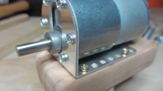 A continuación, atornille el soporte del motor en el otro lado del bloque de madera. Atornille el motor en el soporte del motor.