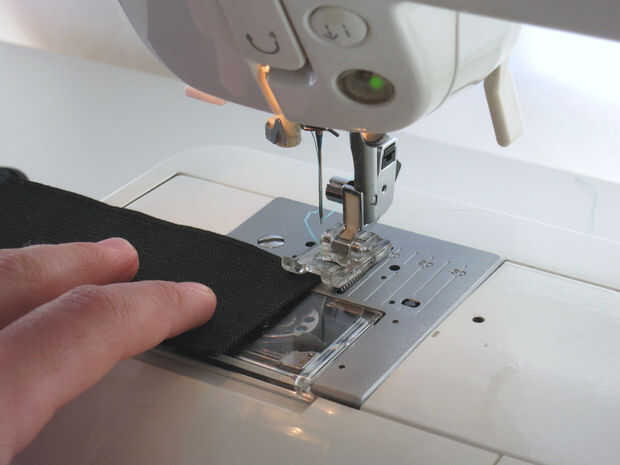 Ahora que ya tienes el largo apropiado de elástico, desea terminar los bordes para que no terminan por desgaste con el tiempo. Utilicé una puntada de overlock para terminar los bordes pero una puntada de zig zag también hará el truco, como se muestra en jessyratfink en su carpeta elástico delgado instructable.