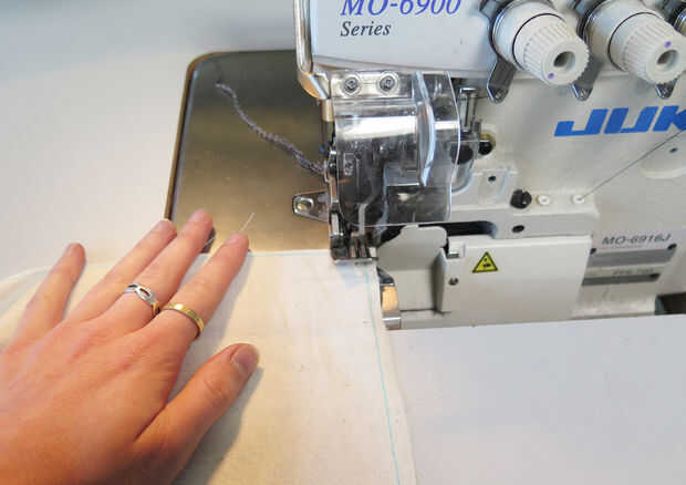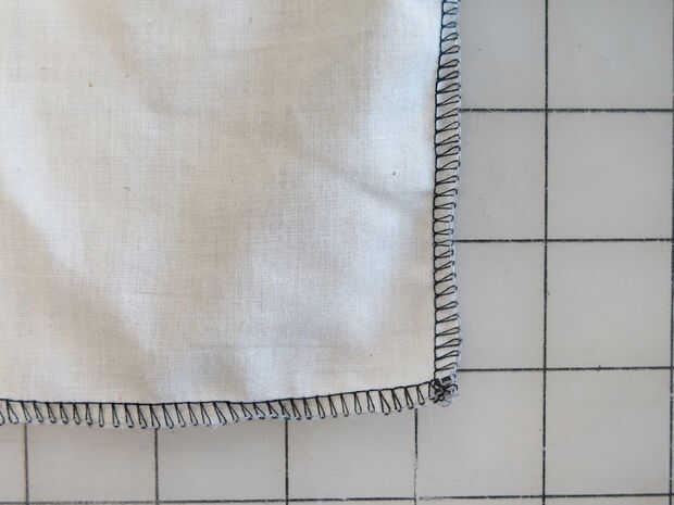 Cortar a la tela y acabado de los bordes. Utilicé a una marea en mis bordes, pero también se puede doblar y parte superior coser los bordes para una apariencia limpia. Si haces este método, no olvide incluir un margen al cortar a la tela.
