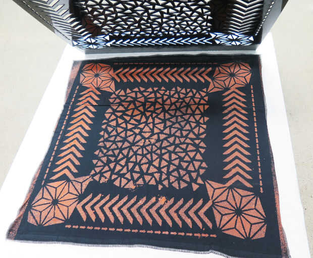 Cuando se ha alcanzado el color deseado, retire la plantilla y permite la impresión de que se seque. (no doblar a la tela o puede lixiviar blanqueador en sí mismo)