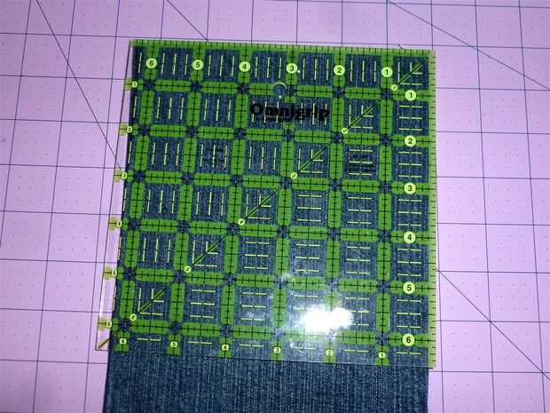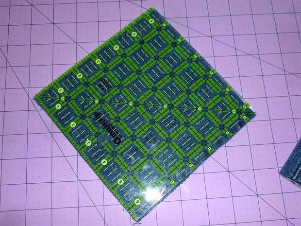 Solía mi acolchado Plaza 6-1/2 pulgada, cortador rotatorio y almohadilla de corte mida cuadrados perfectos de material.