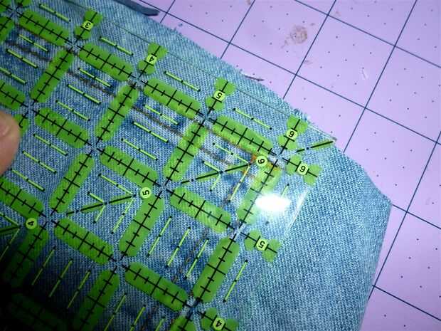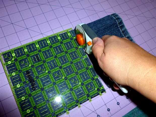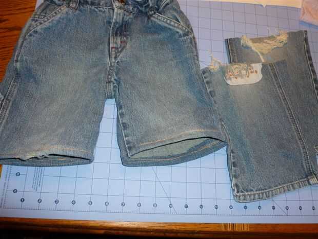 La mayoría de las piezas provenía de los fondos de cortar de mi más viejo hijo pedazos de pantalones cortos, que se habían acumulado en unos cuantos años. Cada mitad una pierna dio dos plazas, y una pierna del pantalón completo dio al menos cuatro plazas.
