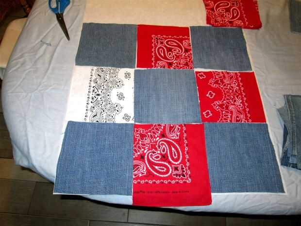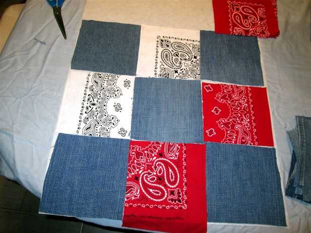Las diagonales son iguales en todas las direcciones para las piezas de jean, pero las piezas de bandana son los mismos en sólo una dirección diagonal.