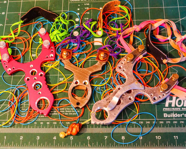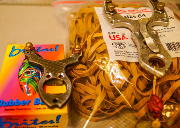 Charles Goodyear en 1839 inventa el caucho vulcanizado, seis años más tarde la banda de goma está patentada en Inglaterra por Stephen Perry. Tarda no más de veinte años antes whippersnappers están haciendo un nombre no tan buena reputación para la Honda. En 1860, Karl Witkowski crea una pintura titulada el cazador poco. Esta pintura captura la importancia histórica del uso de goma para hondas. Parece ser que el cazador poco ha ligado tres juegos de gomas con nudos. El detalle de los nudos en la pintura nos dice que las gomas se han utilizado para artículos de huck en objetivos para más de 150 años. ASEADO!