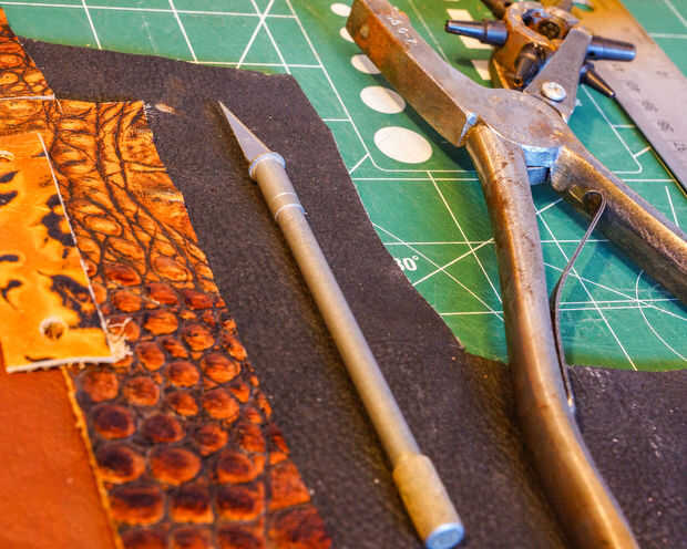 Cuero (duro es buena 2.5mmish, tengo la mía de un barril de desechos en la tienda de artesanías)