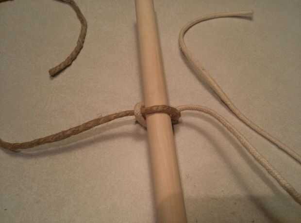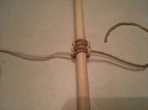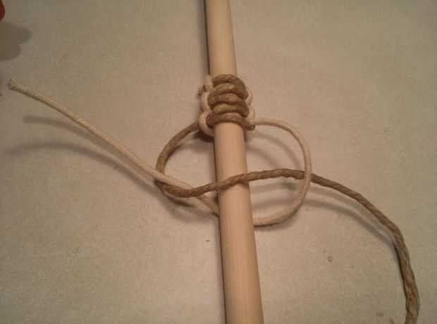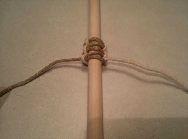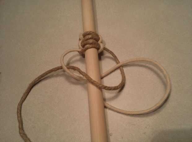 He añadido una puntada básica cobra (o mi variación) para mostrar los nudos. Imaginar la cuerda de dos colores diferentes como una sola cuerda y la varilla de pasador como la cuerda más grande o corredor. Hay un montón de manifestaciones Instructables y Youtube sobre la puntada cobra si éste no tiene sentido para usted.