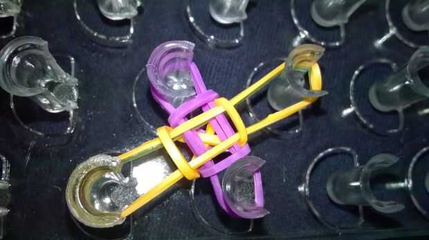 así es como luce la pulsera de cola de pescadoPaso 1: Tomar una de sus bandas de goma y enrosque en un ochoPaso 2: Colocarla en el telarPaso 3: Añadir una banda elástica que no se tuerce en un ochoPaso 4: Agregar otra banda de gomaPaso 5: Tomar su ga