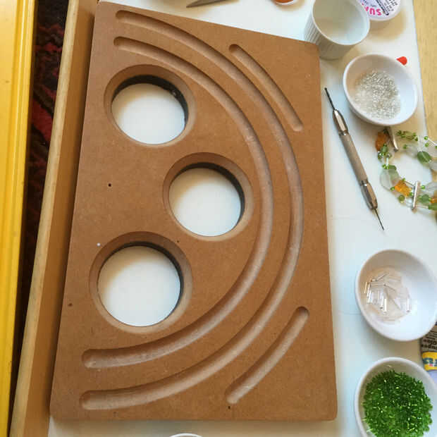 En esta variación corte tres agujeros con una sierra, luego utiliza el router para achaflanar estas fuera. Estos agujeros eran el tamaño adecuado para caber platos de salsa china intercambiables de un supermercado oriental.