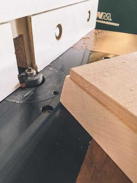 En segundo lugar, asumí mis piezas al router. Levanté la hoja de 3/8" para dar el efecto flotante de que después. Otra vez, corte su extremo grano primero, luego hacer los lados.