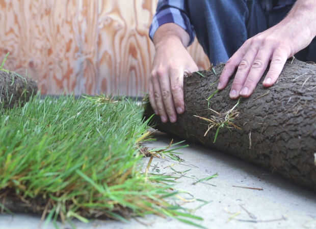 Desenrollar el césped fuera, corte una sección un poco más grande que mi bandeja de la porción con una espátula.