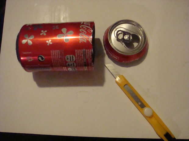 Corte la parte superior de la lata, 1cm hacia abajo con el cuchillo