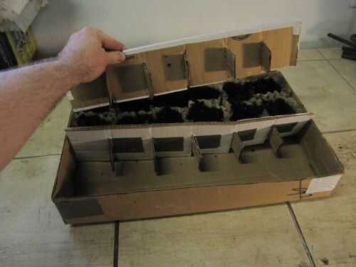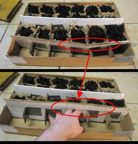 Apenas como con la primera fila, llenar todas las posiciones seis pot en esta fila. Cuando termine, presione suavemente la segunda guía de colocación hasta que pone en el centro de la bandeja. Ahora, tire la primera guía de colocación, dejando ambas filas de macetas que se tocan y moverla para que apenas toque la parte exterior de la segunda guía. Ahora habrán formado las posiciones del pote para las terceros y cuarta filas.