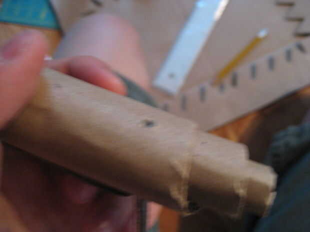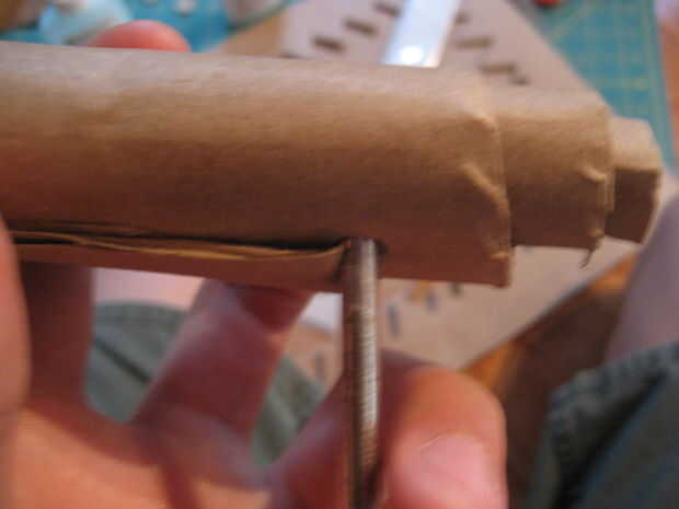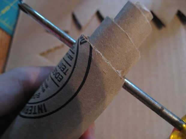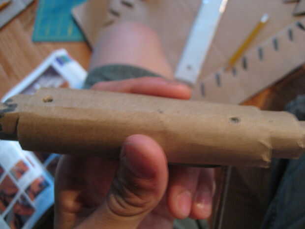 Poke dos agujeros de 8cm de separación, en ambas empuñaduras. Usé un lápiz y un destornillador para hacer esto. Una vez más, ver las fotos para ayudan.