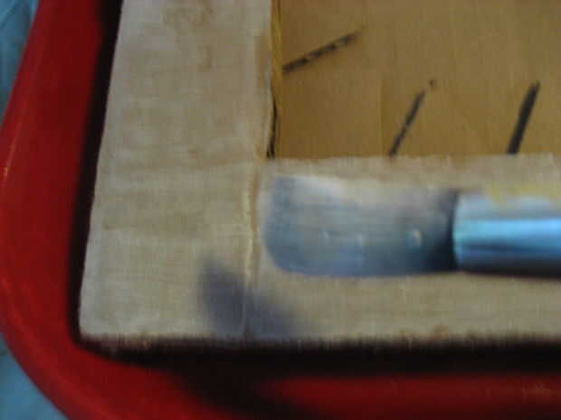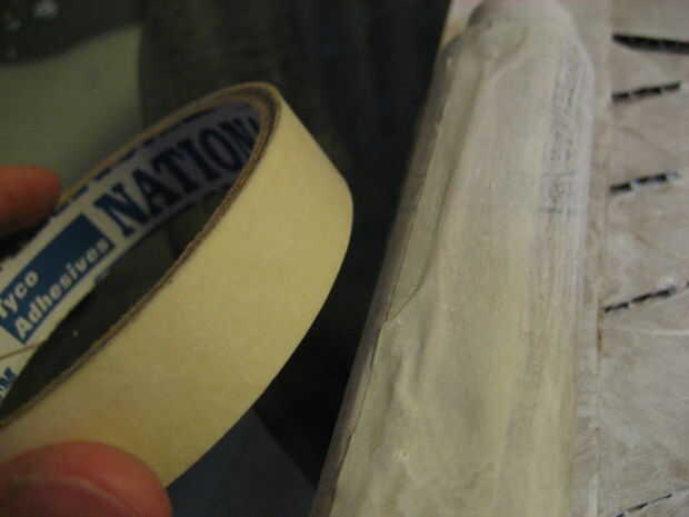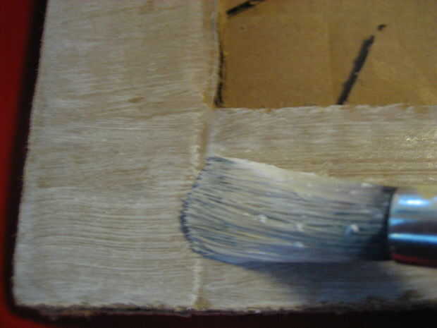 Pintar la tabla con pintura blanca. pintura 2-3 capas, por lo que algunos de lo brown sigue mostrando a través de. Las asas, puede cubrir el alambre con cinta adhesiva y pintura sobre con otra capa o dos. pintura en movimientos largos en una sola dirección.