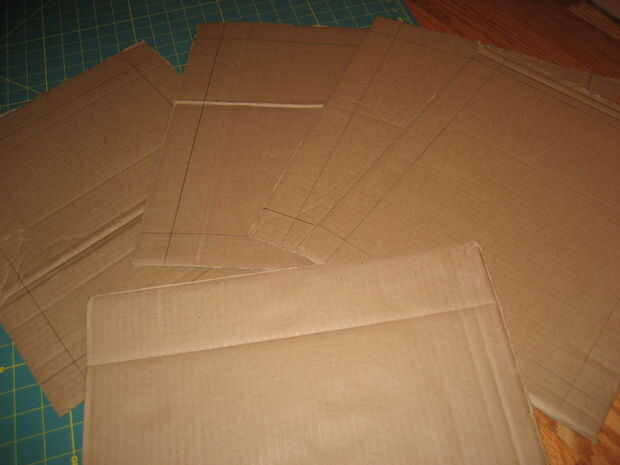 Elija uno de los rectángulos más agradables y dejar a un lado. Usando la regla y lápiz, dibujar bordes de 4 cm de los lados en los otros 4 rectángulos. cortar el interior de 3 de los 4 rectángulos que acaba de trazar.