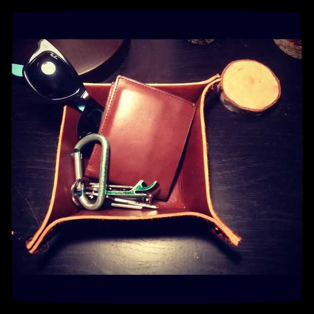 Lista de materiales para este proyecto. -8 "x 8" 6-8oz cuero bronceado vehículo (prueba reparación zapaterías para desechos baratos y también eBay!). El más pesado el peso, cuanto más gruesa la piel. Obviamente cuanto más gruesa la piel, más difícil de trabajar con. Durante este instructable usaba cuero de 6 onzas, pero la foto de arriba es de mi primera de estas, que era de 8oz. Depende de usted, sé que sólo voy a usar cuero ligero para más termino haciendo :) - tinte de cuero de su elección (en este instructable usé tinte bronceado de Fiebing, pero tuvo que utilizar múltiples capas para alcanzar el color que quería. He ahora comenzó a usar marrón claro, funciona bien-) color de hilo resistente de su elección (preferiblemente encerado, pero no es necesario, he utilizado un blanco apagado color)-cúter con cuchillas de buena-pequeño punzón de ángulo recto (o aguja grande)-martillo de tamaño estándar - carpinteros cuadrado - nitrilo/látex guantes - trapos de desecho-cubeta o bote grande de tibia (no caliente) agua - un tenedor. Sí un tenedor.