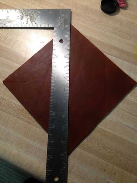 Pone su escuadra carpintero diagonalmente a través de su piel de una esquina a otra. Ahora corte de la punta (ouch) hacia el centro de 2.5" en cada esquina.