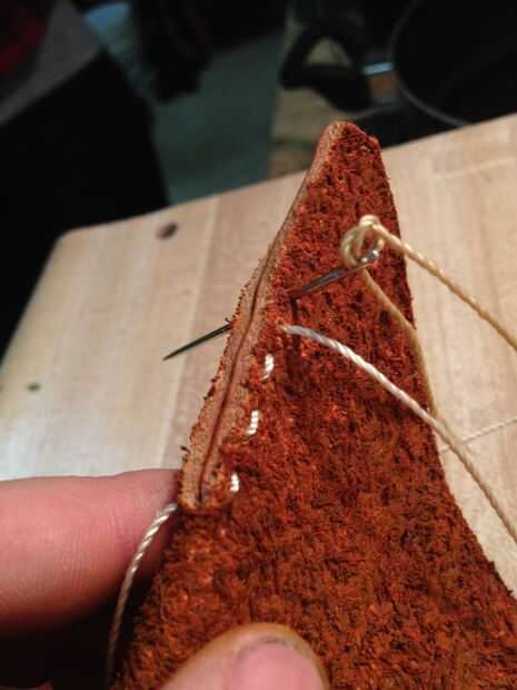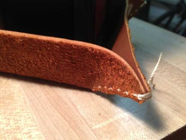 No soy ningún maestro stitcher, así que algunos de ustedes podrían tener una mejor manera de hacer esto, pero esto es lo que acabé haciendo. Antes de empezar la costura, dar a su piel una clavada, dab seca y no mates más. A menos que quieras las puntadas para convertir el color de la piel, que no lo hice. Una vez más, depende de lo que usted desee. Obviamente enhebrar su aguja. Empiece en la parte inferior de una esquina y su camino a la cima. Al llegar a la cima, lazo en la esquina varias veces. Simplemente creo que se ve bien. Lazo sobre el extremo cortado y apriete tanto como pueda. Pongo un poco de pegamento de piel sobre él para mantenerlo fuerte. Hacer esto en las cuatro esquinas y básicamente listo!