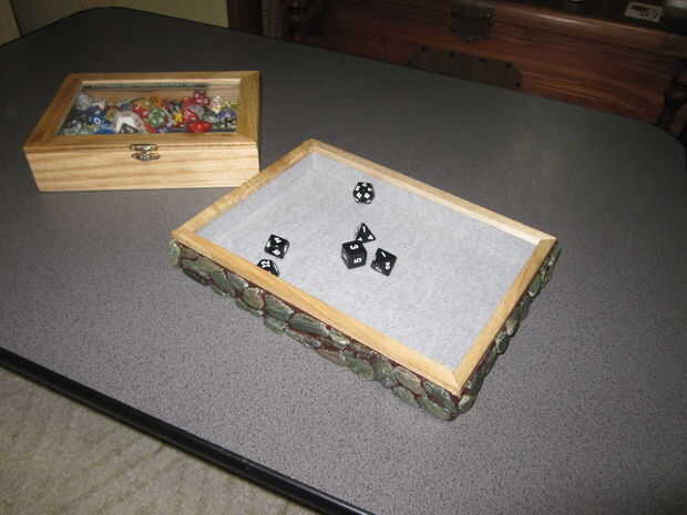 Para esta segunda bandeja dados, he elegido un tamaño que encajaría en mi caja de almacenamiento dados (del tamaño para fijar 1 libra de dados) interior para facilitar el almacenamiento de ambos entre sesiones de juego. El método básico de construcción era el mismo; con los siguientes materiales: