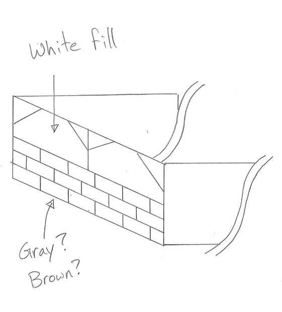 Como se muestra en el cuadro 2, originalmente concebidos tener 3 filas de pequeños ladrillos en la pared de fondo. Una vez que empecé a trabajar con la arcilla, sin embargo, decidí que era demasiado blando para hacer esas formas pequeñas.