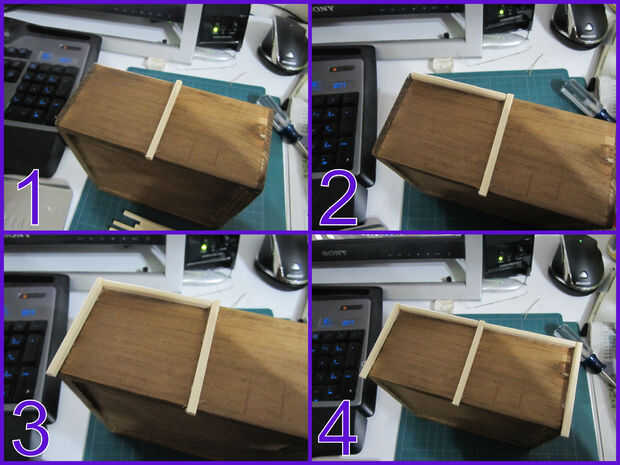 * Si va a utilizar papel arrugado en lugar de arcilla para llenar los paneles, recomiendo poner a la caja antes de los palillos.