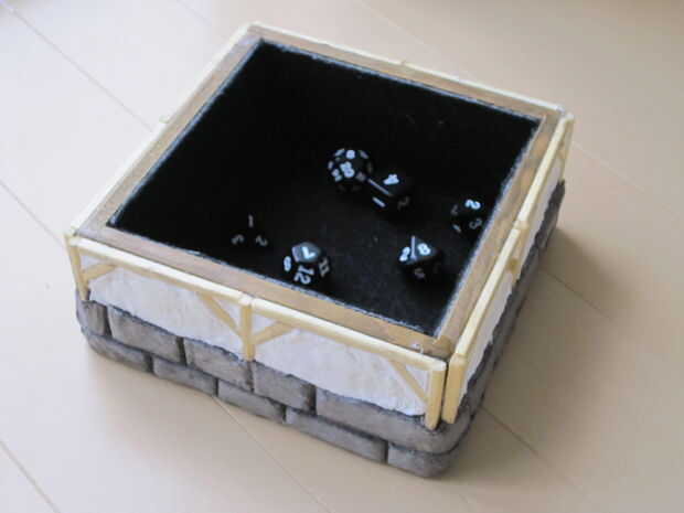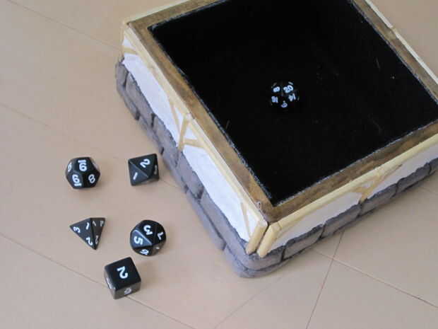 Algún día, puedo, añadir un palillo "marco" alrededor de la parte superior para ocultar los bordes del fieltro y la porción visible de la caja original. Por ahora, sin embargo, la bandeja de dados cumple su función y lo hace con mucho estilo!