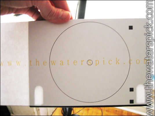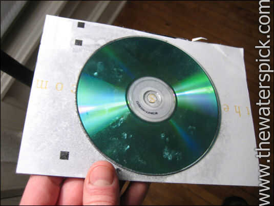 A continuación rocíe algún fijador para el papel y pegar un viejo CD/DVD que. Puede utilizar la plantilla (corte dentro de la línea, no sobre) pero me parece que es más fácil que trazar una línea de rastreo un disco.