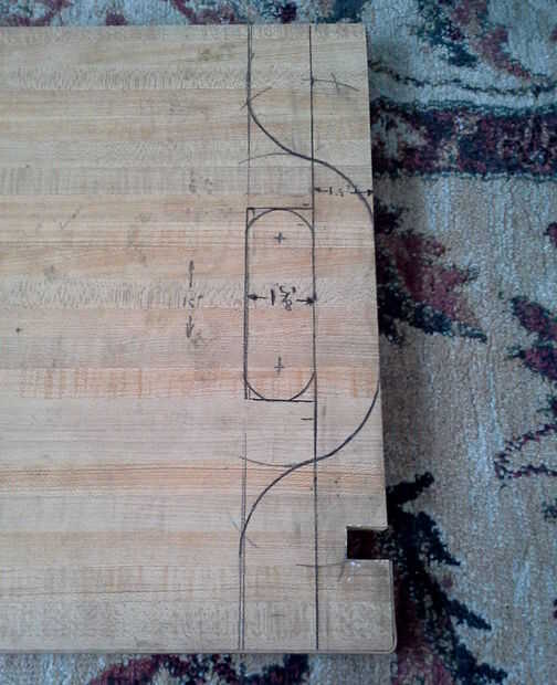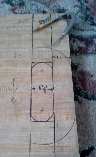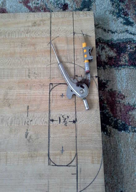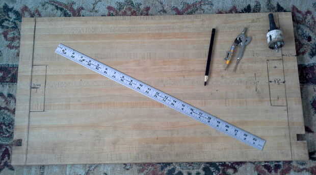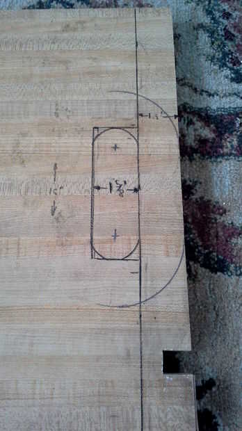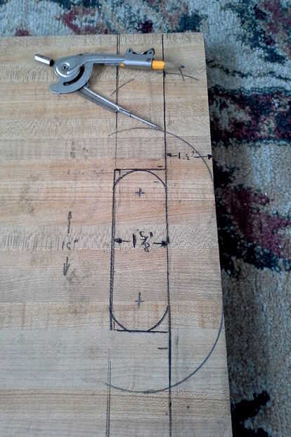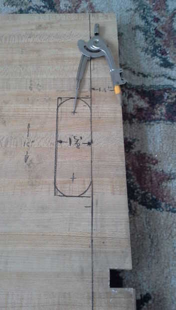 -Me marcó el punto para el centro de mi sierra. Yo estaba usando un pulgadas 1 5/8 bits por lo que el punto central es 13/16 de cada borde del rectángulo.