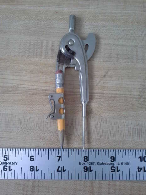 -Abrí mi brújula para llegar desde el punto del taladro al borde de la bandeja y dibujó un arco.