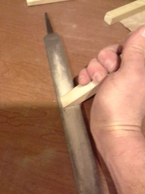 Redondear las aristas de uno de los lados más estrechos de la espiga. Este lado sería la parte superior del labio. Cuando se coloca en la bandeja el labio será 3/4 pulgadas de alto y 1/2 pulgada a través.