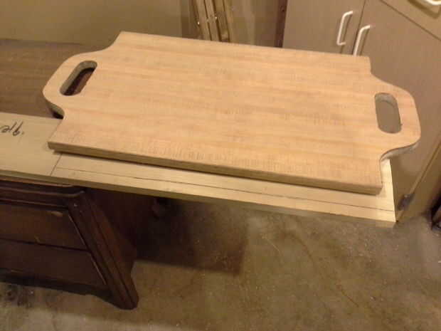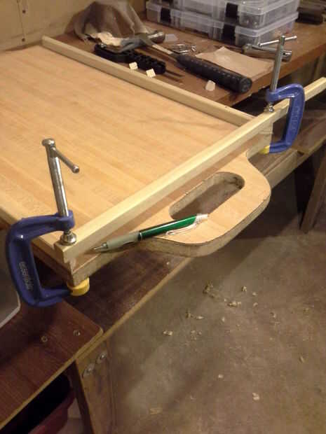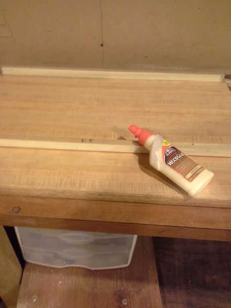 Poner pegamento de madera en la parte inferior del tablero y volver a encajarla a la bandeja. Uso el mismo clavo agujeros desde antes de alinear el labio. Usted puede Agregar unos clavos más.