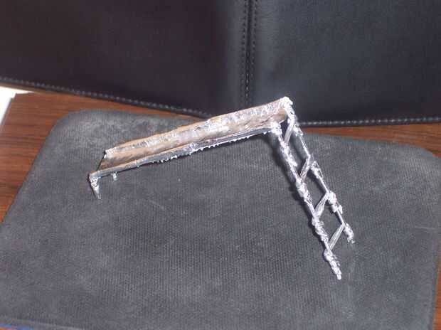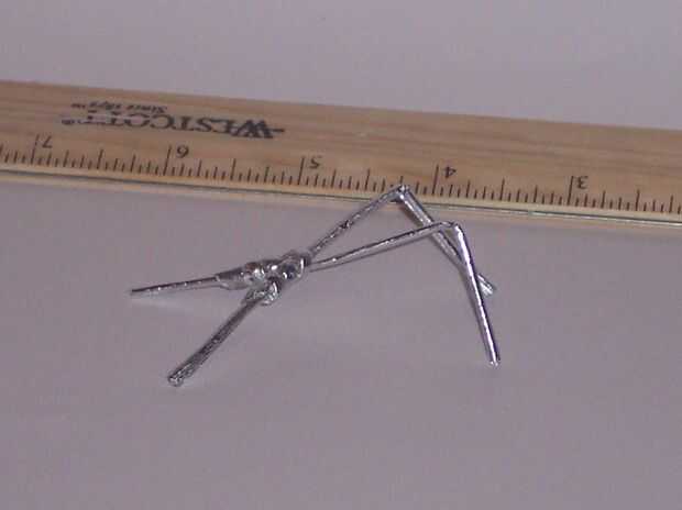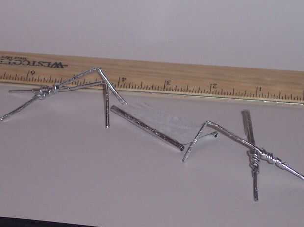 Similar al proyecto de reposapiés, las piernas (piezas de largo) que a través de la parte inferior de cada soporte de V. Cada apoyo llevará a cabo las 2 piernas en lo que parece una "X". Deslice ambas piernas a la misma distancia hasta la parte inferior de la V en el punto medio de ambas piernas (cerca de 1 1/4 pulgadas de cada extremo). Los conectores (1 pulgada había doblada piezas) deben estar en el mismo extremo de la "X". También necesitan estar apuntando en la misma dirección y ser aproximadamente una pulgada aparte.