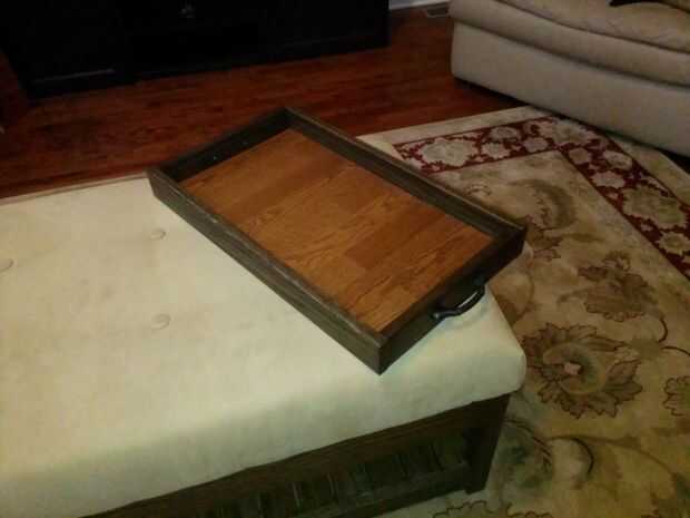 Construí esta bandeja para acompañar una otomana que construí recientemente. Está hecha de retazos de antiguos proyectos (a excepción de las asas).