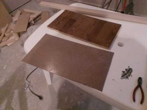 En la foto es uno de un conjunto de bandejas de TV que hice para mi esposa. Mayoría de los aparatos contiene cuatro bandejas. Ella quería seis.Materiales necesarios son:1/2 pulgada de madera contrachapada de abeto grado A-DCubierta plástico laminad