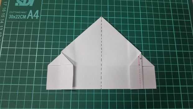 Coger una capa de la izquierda y la derecha a la línea central. Usted puede ir a cualquier anchura hacia la línea central para conseguir diversa altura de la bandeja. Usando el mismo papel, cuando se desea una bandeja menos profunda, usted conseguirá un área más grande de la bandeja.