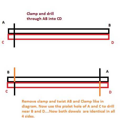 Debe tener 2 clavijas cuadradas (A) restante... cortar y perforar según el diagrama. antes de taladrar... medida y perforar los extremos la mitad de la anchura de las patas.