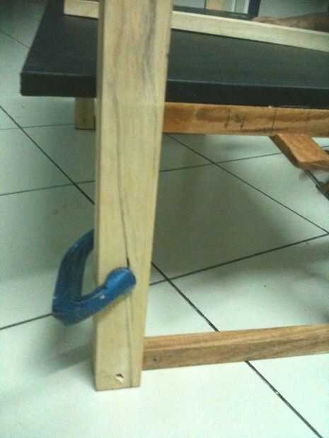 Coloque los tacos en las patas.. .drill y asegúrelo con un tornillo a cada lado. y seguro.