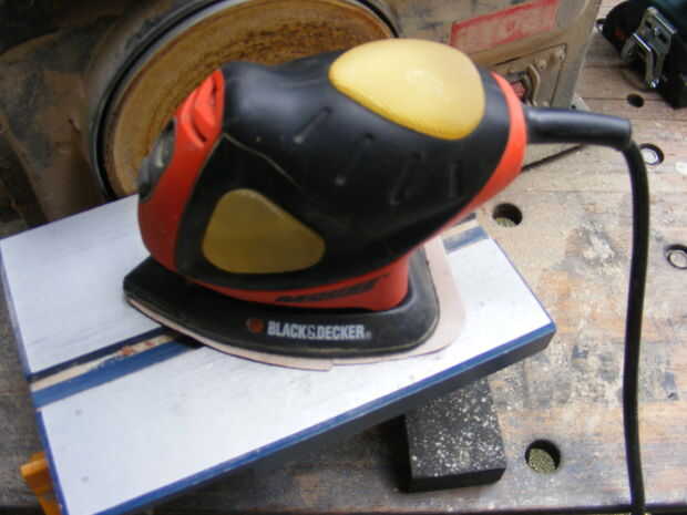 Utilicé mi fiel Ratoncito de Black & Decker (oh la ironía!) lijadora para suavizar los lados y bordes de acabado. Entonces ligeramente mano de lija en la parte superior con papel de lija de grano 400. Tenía que tener cuidado de no eliminar gran parte de los diseños en las trampas de ratón.