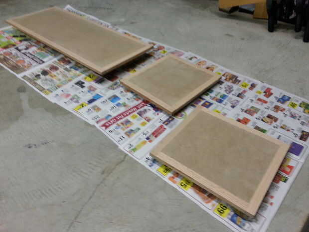 Usé un área bien ventilada, donde no sólo podrían mis proyectos seco, pero los humos de la mancha no tendría que ser respira constantemente en. He puesto periódico viejo en la superficie del piso para atrapar gotas y exceso mancha. Los materiales fueron elevados en la superficie del papel para que pudiera manchar varias aristas a la vez.