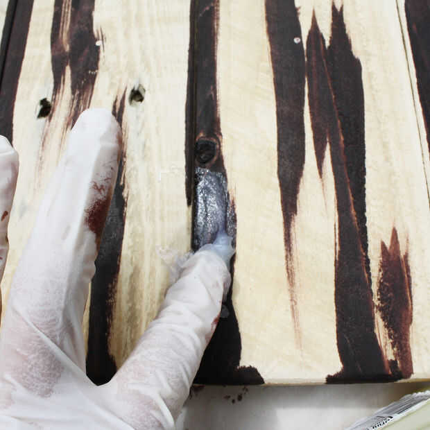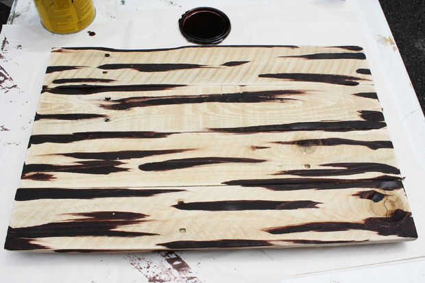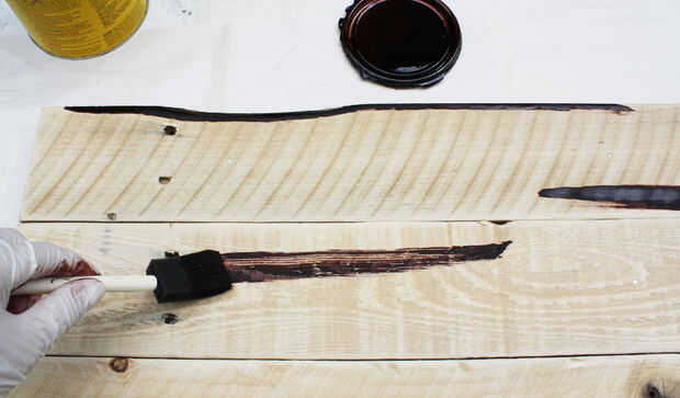 Con su cepillo de la esponja agregar algunas manchas en un patrón aleatorio. Una vez que la Mancha ha absorbido en la madera, untar vaselina en las partes que quieres visible.