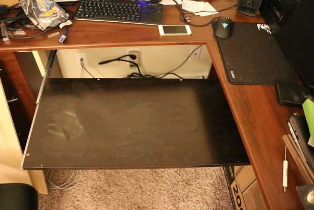 Ahora se desliza dentro y fuera perfectamente. Salvo que su tirando hacia afuera en un ángulo. Puedo vivir con eso porque planeo tener un segundo monitor en un ángulo a mi primero. Si esto molesta, tiene una segunda ayuda de persona Coloque la bandeja mientras trabaja por debajo de la mesa.
